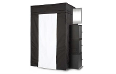 Enclosed booths generally have higher rates while open-air booths are the most economical. Open-air booths can be as simple as a camera on a tripod in front of a white backdrop or may be more elaborate with curtains or a green screen as a backdrop.
